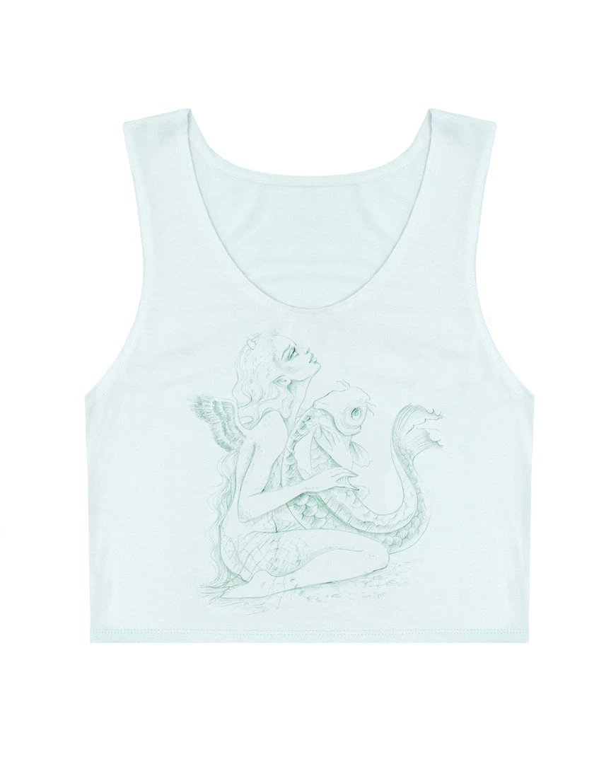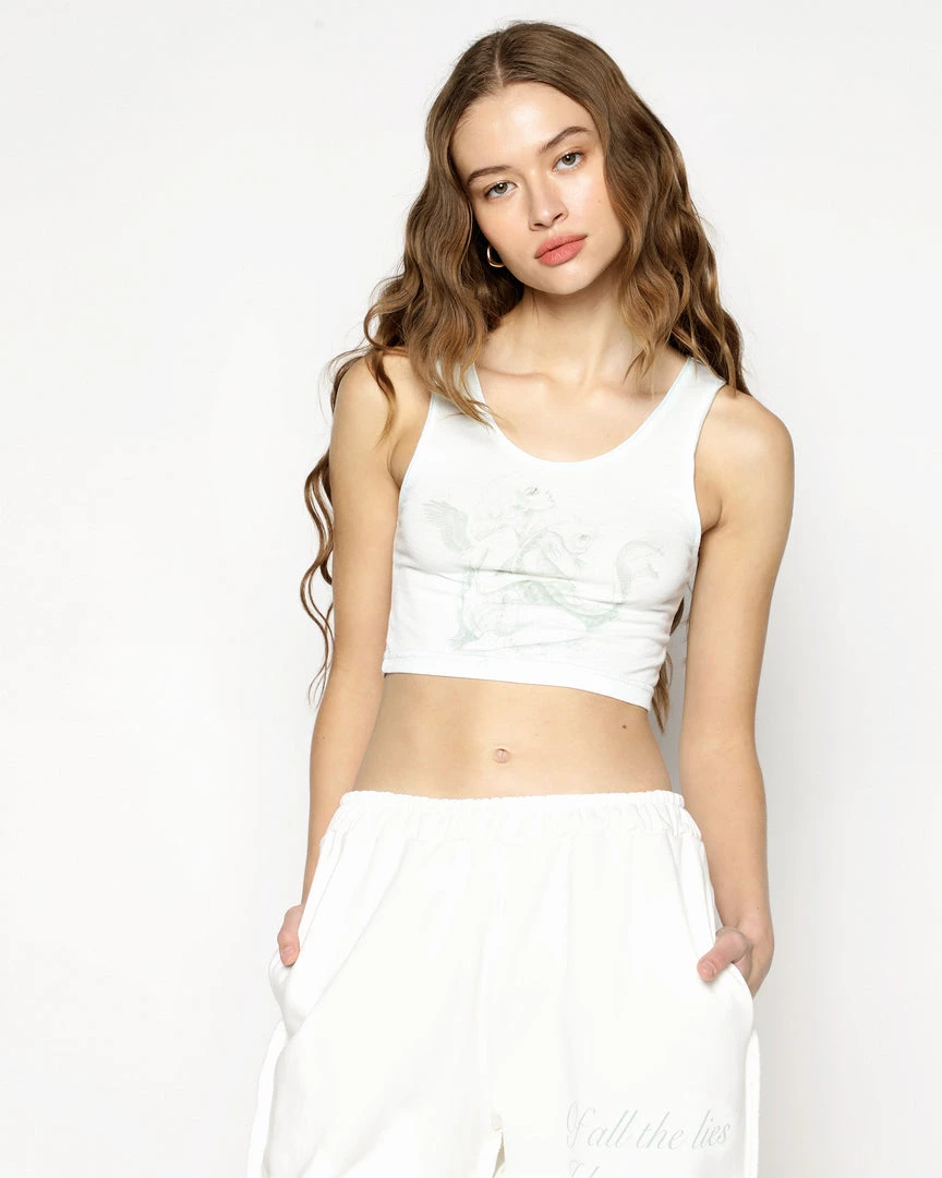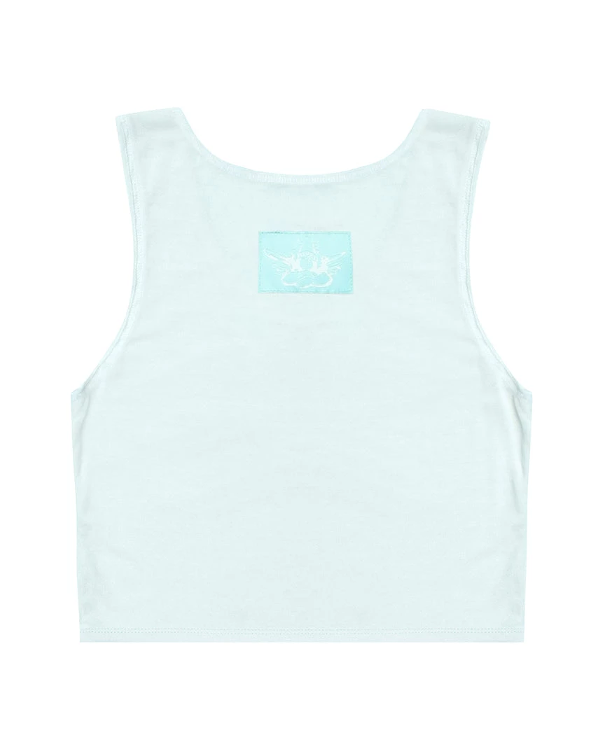 Lightweight, slightly sheer crepe tank top. Scoop neckline, cropped hem, and Ariel x Boys Lie logo patch on the back. Made in Los Angeles, California.