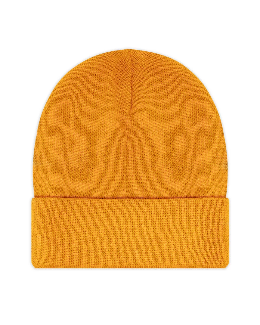 Gold beanie with monochromatic Boys Lie logo patch.