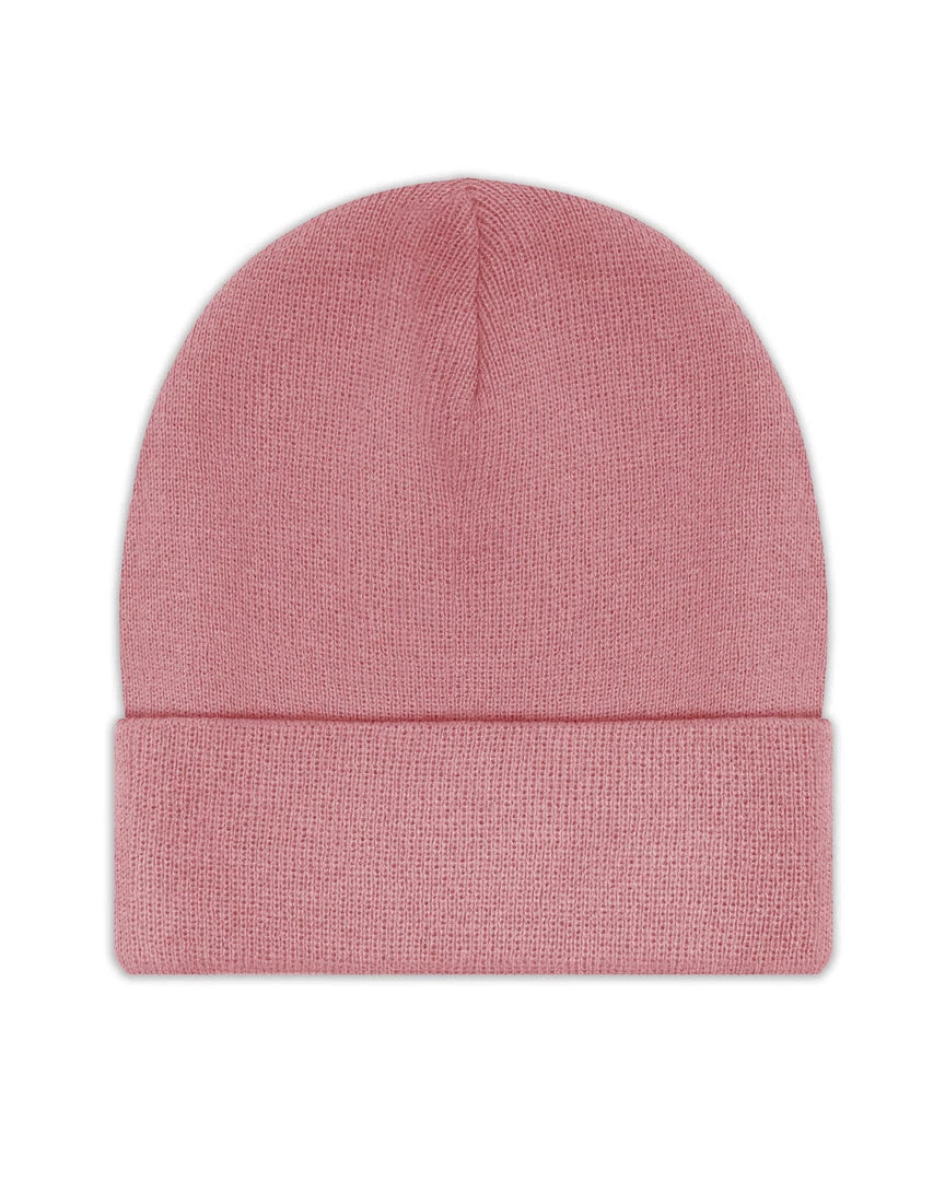 Dusty pink beanie with mauve Boys Lie logo patch.