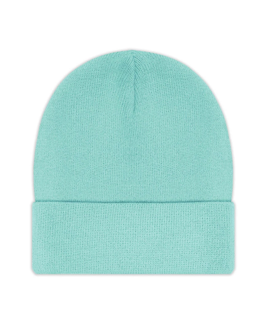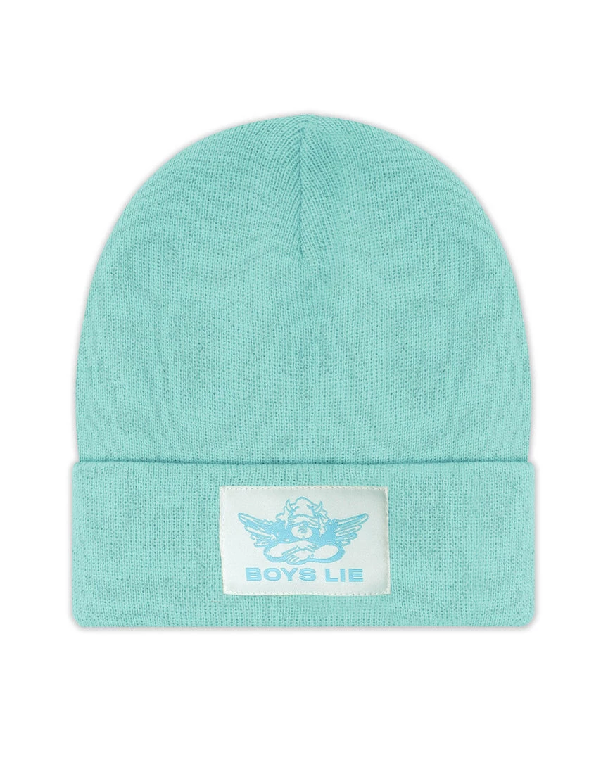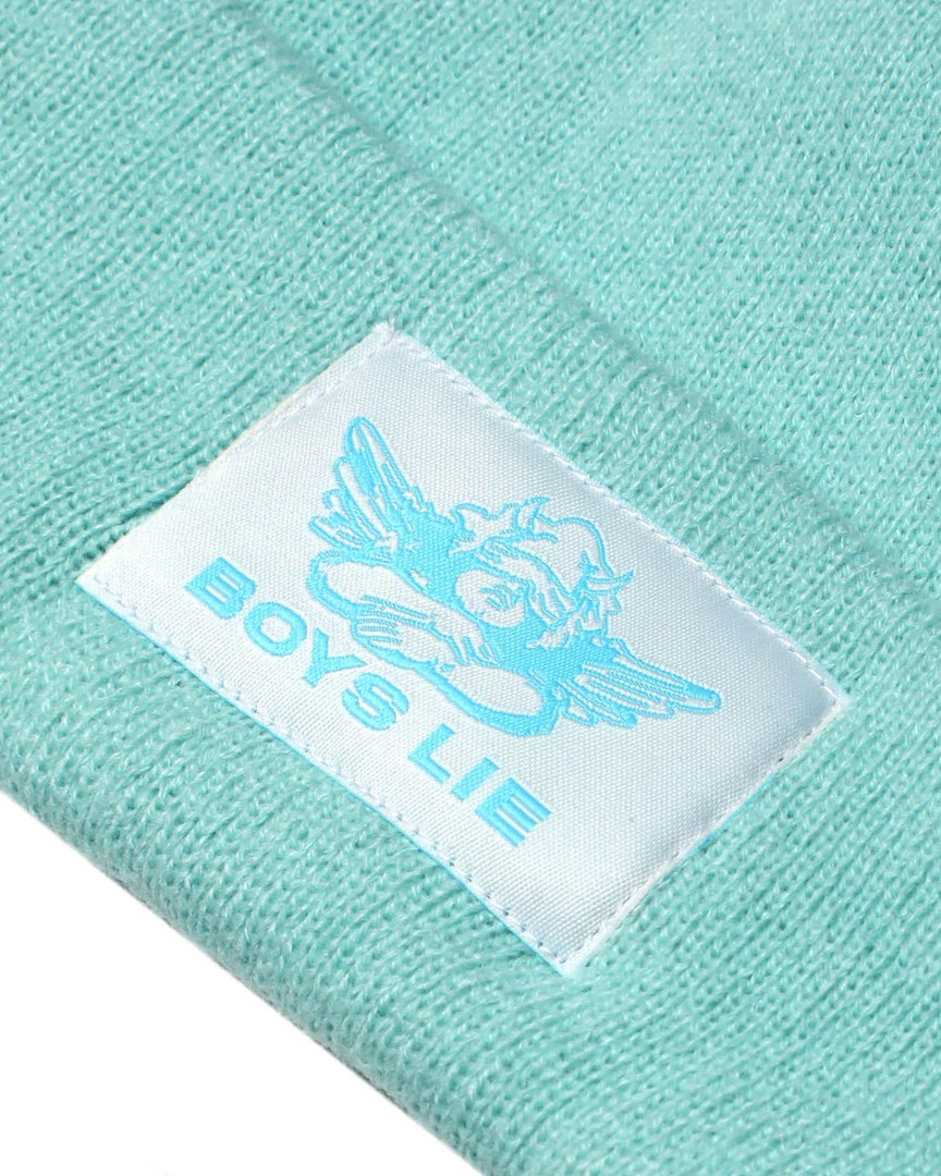 Deep seafoam beanie with monochromatic seafoam Boys Lie logo patch.