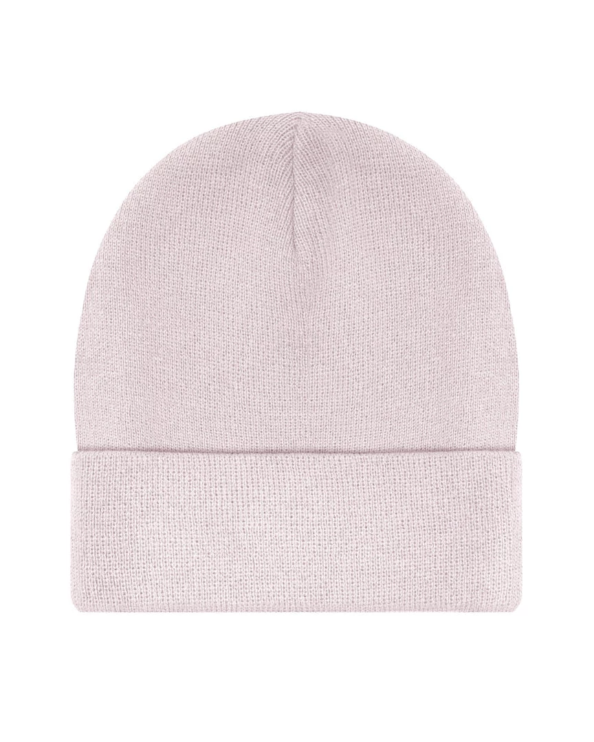Light pink beanie with blue Boys Lie logo patch.