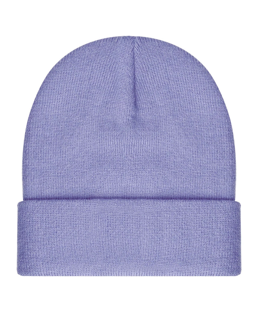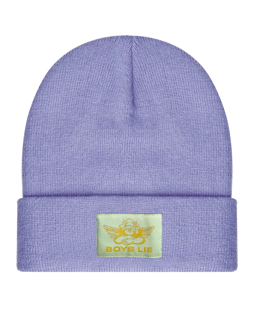 Lavender beanie with seafoam green Boys Lie logo patch.