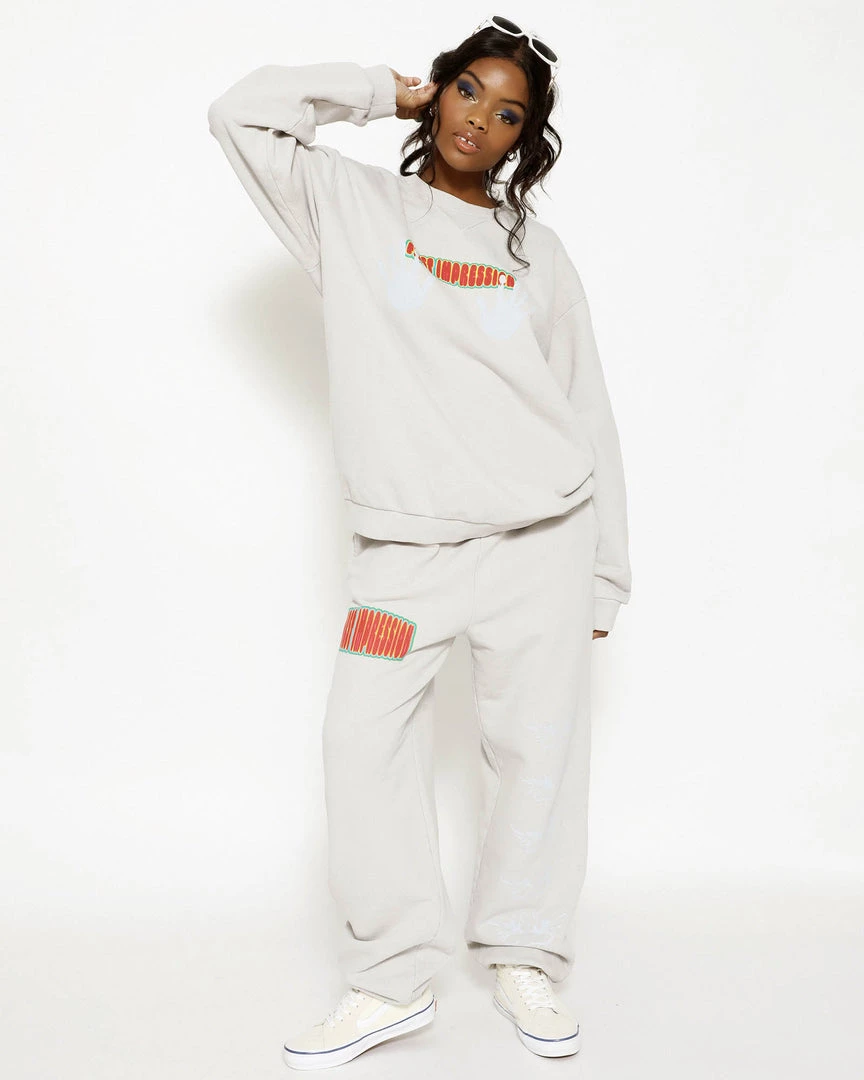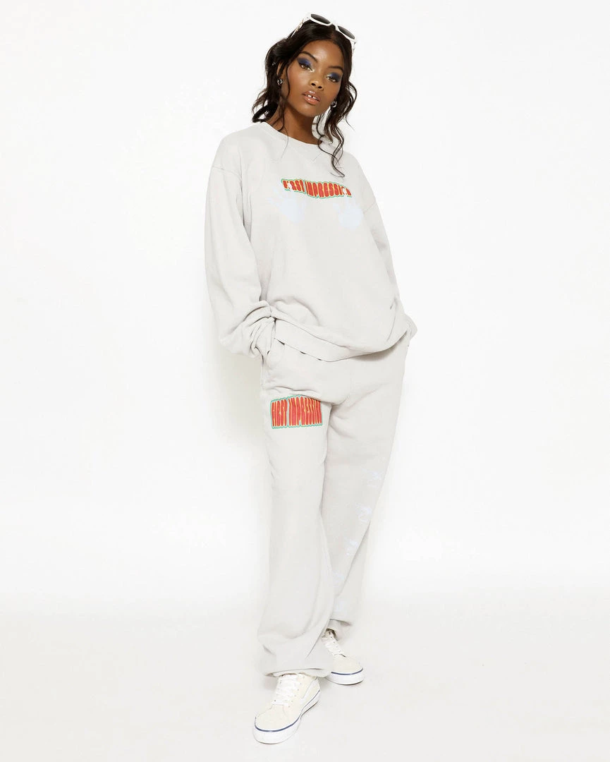 Heavyweight French terry fabric. Oversized high rise sweatpants with back and side pockets, elastic waistband and cuffs.