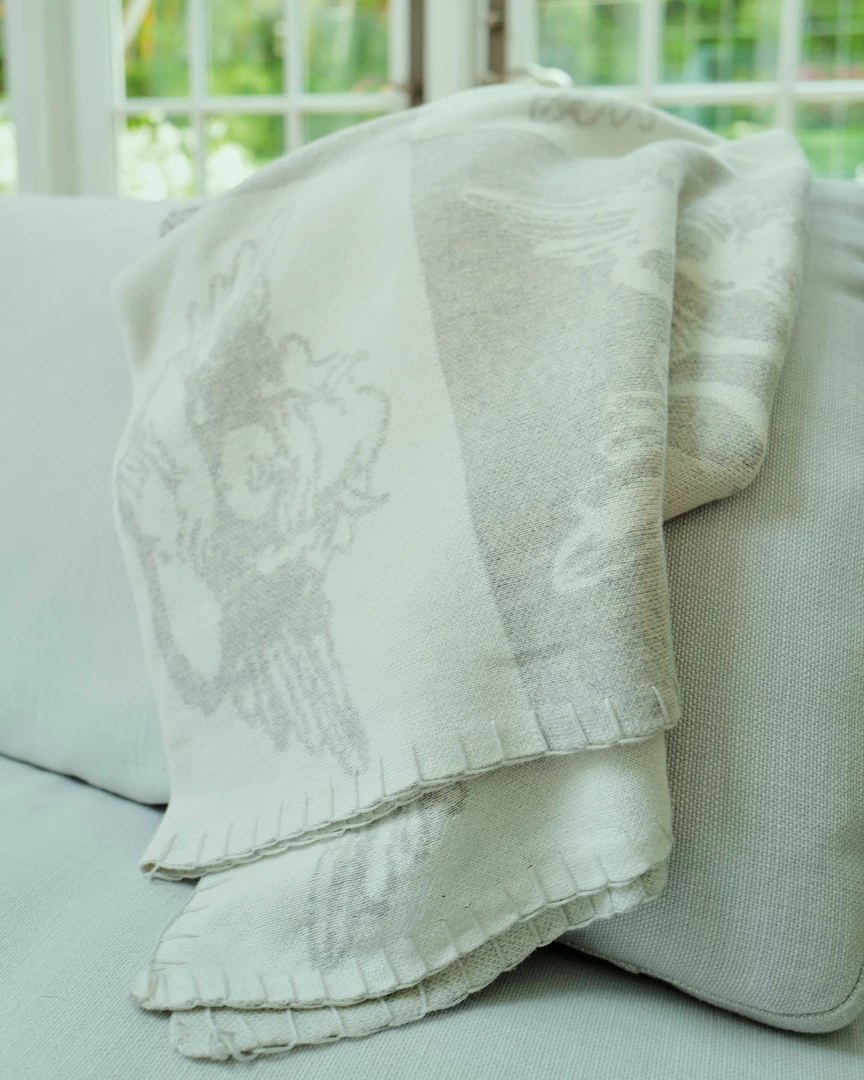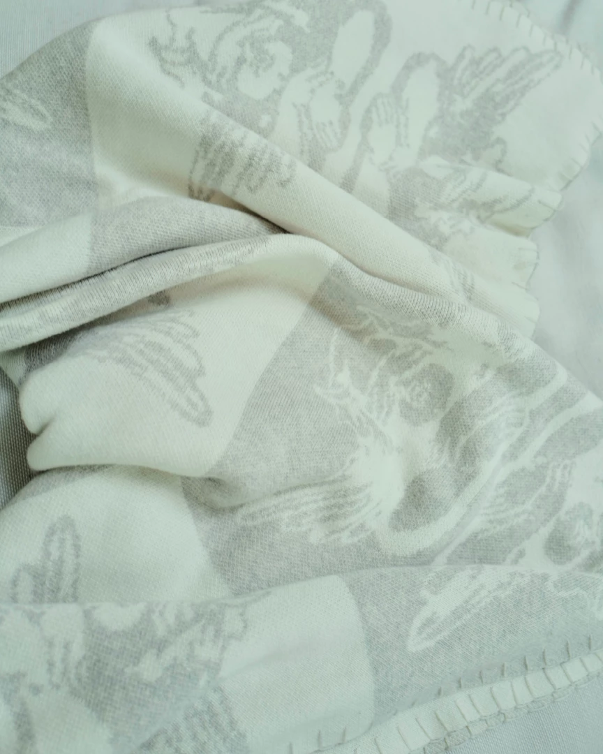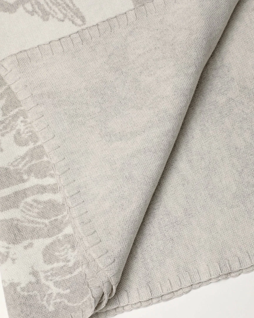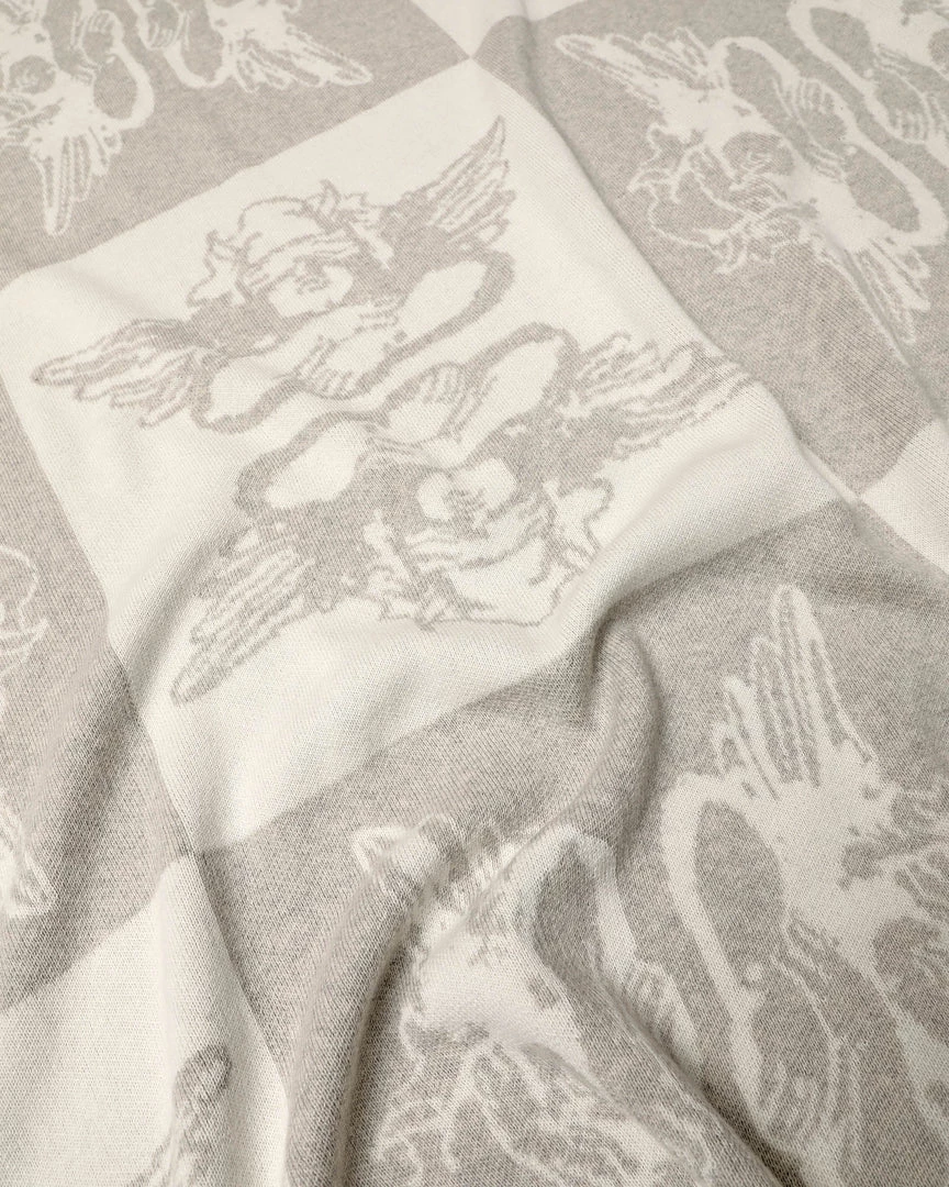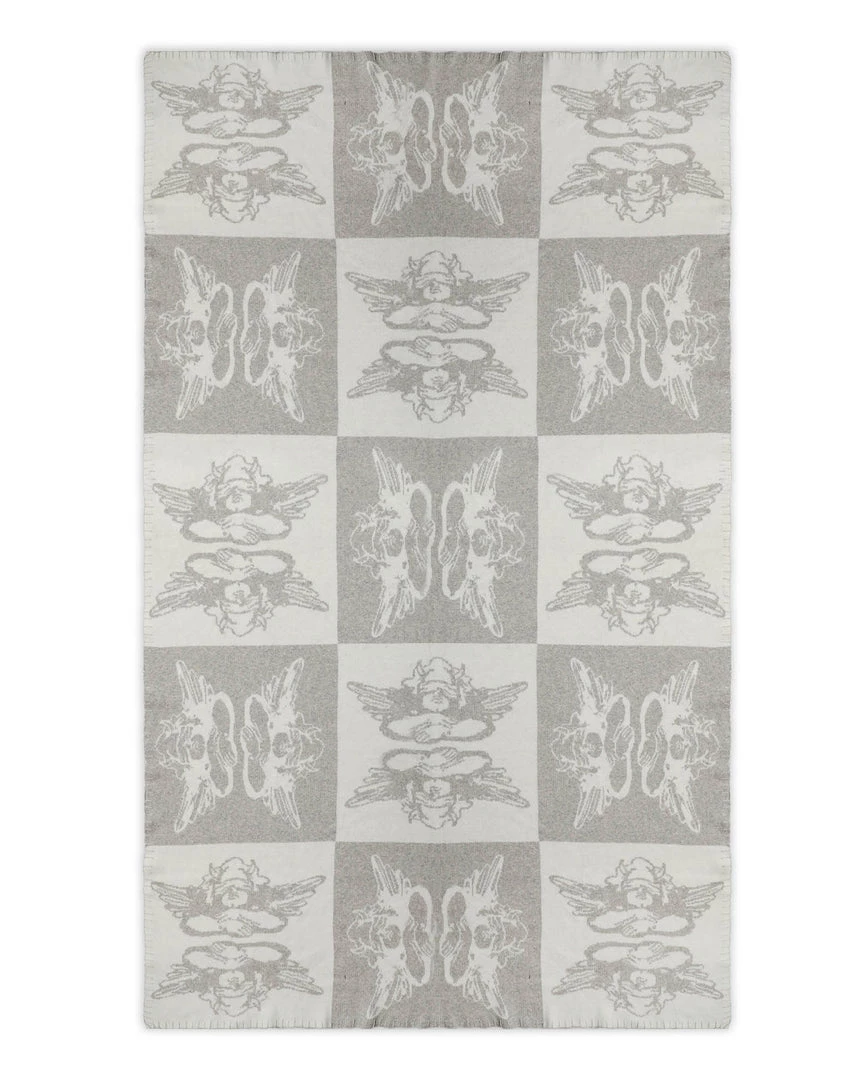 Heather grey and cream checkered throw blanket with Boys Lie logos throughout.