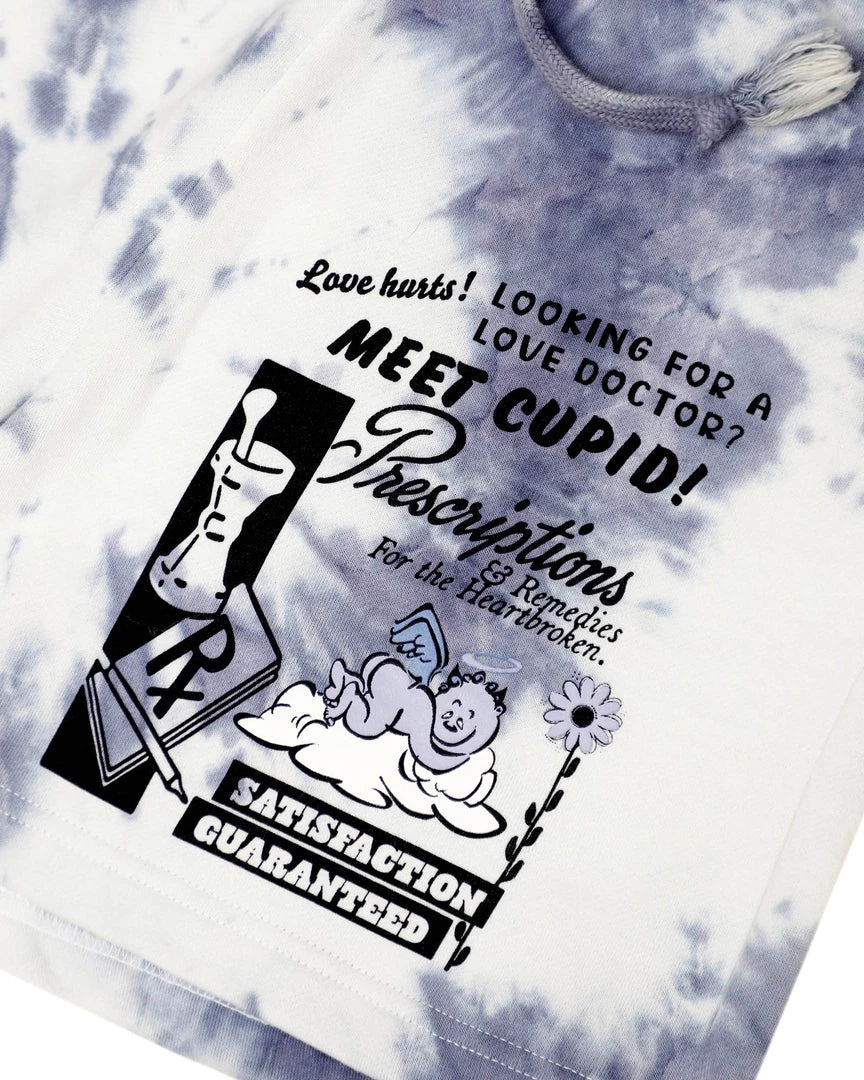 Lightweight fleece in deep purple tie dye. High rise sweat shorts with a thick elastic waistband, adjustable drawstring, and side pockets. Each item is hand dyed and may show slight color variations.
