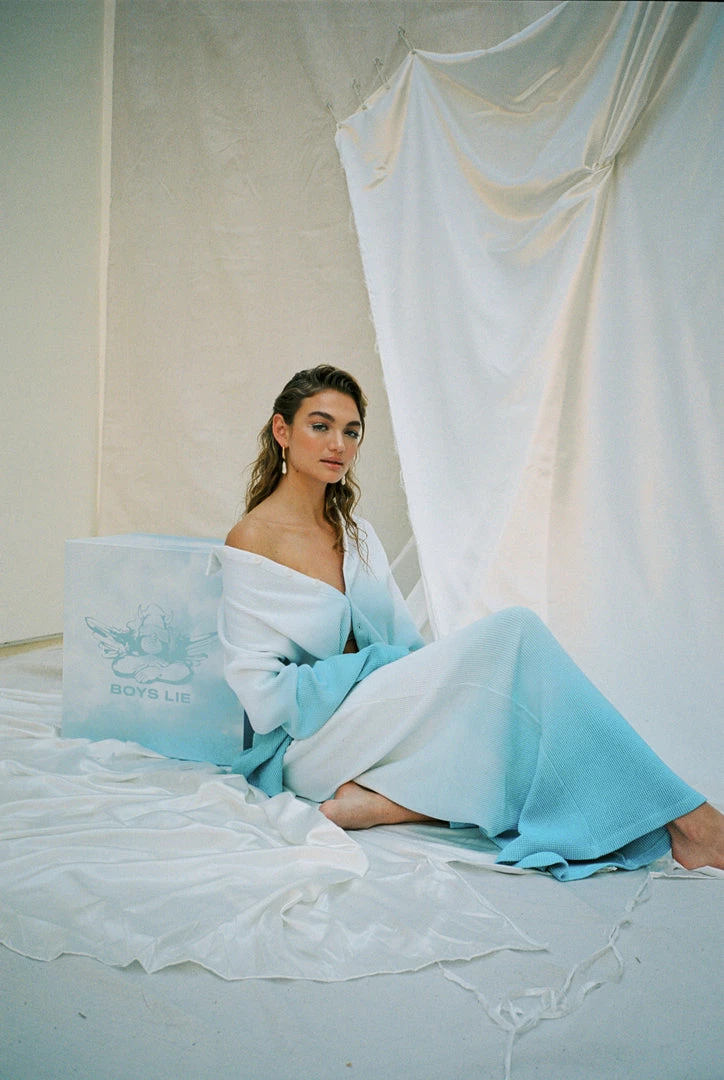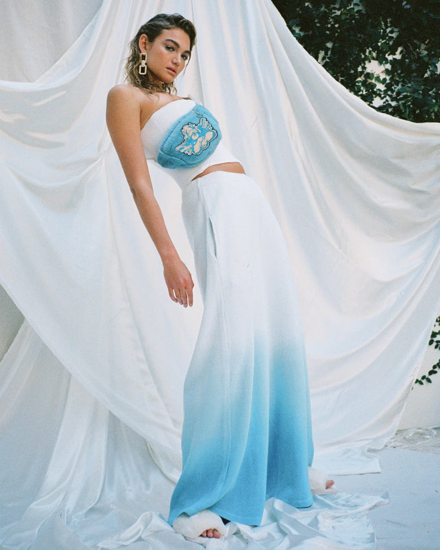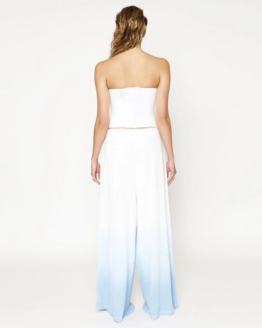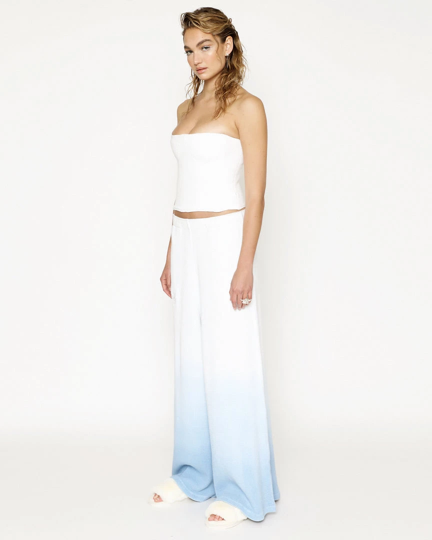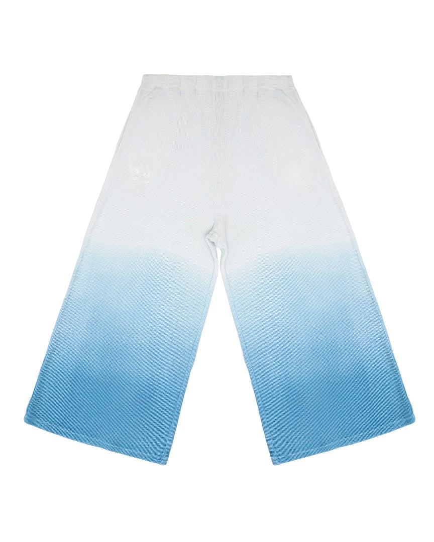Soft thermal wide leg pants. Elastic waistband and embroidered logo. This item is hand dip-dyed and may show slight color variations.
